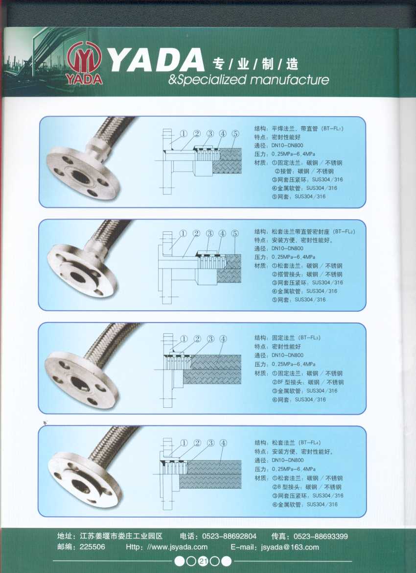 秉天時 籍地利 仰人和 虔誠一個永恒的理念,創新永續.百諾不如一信,亞達人堅持以信為本,視客戶如同上帝,把對信譽的追求,體現在嚴格的質量控制和完善的客戶服務上,讓客戶百分之百滿意是亞達人不變的信念。 本廠系ISO9001質量認證企業、計量合格企業。本廠專業致力于生產不銹鋼金屬波紋軟管、超高壓、高壓膠管、波紋管補償器(膨脹節)、立式、臥式、冷卻器。本廠產品具有承受壓力高、彎曲半徑小、抗疲勞性能強、使用壽命長等特點。廣泛應用于電力、石化、冶金、水泥建材、工程機械、礦山及液壓系統。產品暢銷全國各地。 今日亞達之成功源自諸多客戶的厚愛,明天的輝煌更離不開您對我的支持與信賴。查看更多>>